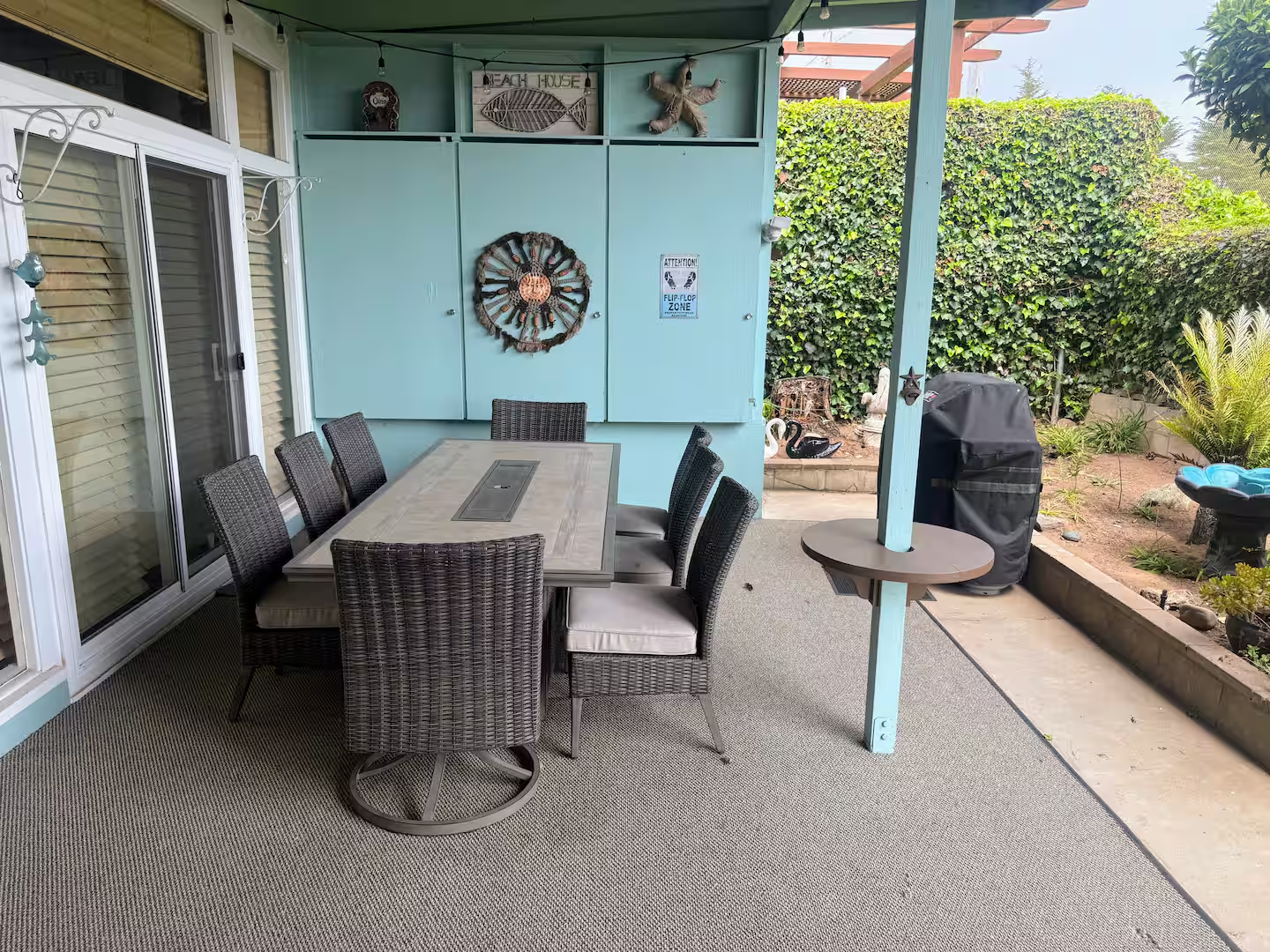 Amazing Grace Home features an open floor plan designed to maximize the views throughout. The home has original 1950s single-pane windows in the living room, kitchen, and bedrooms that bring in great natural light, but can allow heat loss. We’ve added a new forced-air furnace that heats the main living/kitchen area, and each bedroom has its own separate wall heater. We recommend bringing a warm pullover and slippers—cozy nights are perfect for watching the fog roll in and out. You’ll enjoy multiple deck and patio areas that extend the living space outdoors. Watch golfers with your morning coffee and take in sunset views over the bay in the evening. During seasonal migration, you may even spot Monarch butterflies. The home includes three smart TVs with internet streaming (use your own Hulu/Netflix/etc. logins): Master Bedroom, Family Room, and the queen bedroom. Additional amenities include a coffee machine with washable gold filter, wireless Bluetooth speaker, compact washer/dryer combo, BBQ, microwave, gas stove/oven, and a well-stocked kitchen with pots, pans, plates, and utensils. House rules: No pets. No smoking or vaping anywhere on the property (strictly enforced due to a severe smoke allergy). Occupancy & pricing: Base rate includes 5 guests. Each additional guest is $50 per night and will be calculated at booking or if the reservation is modified later.